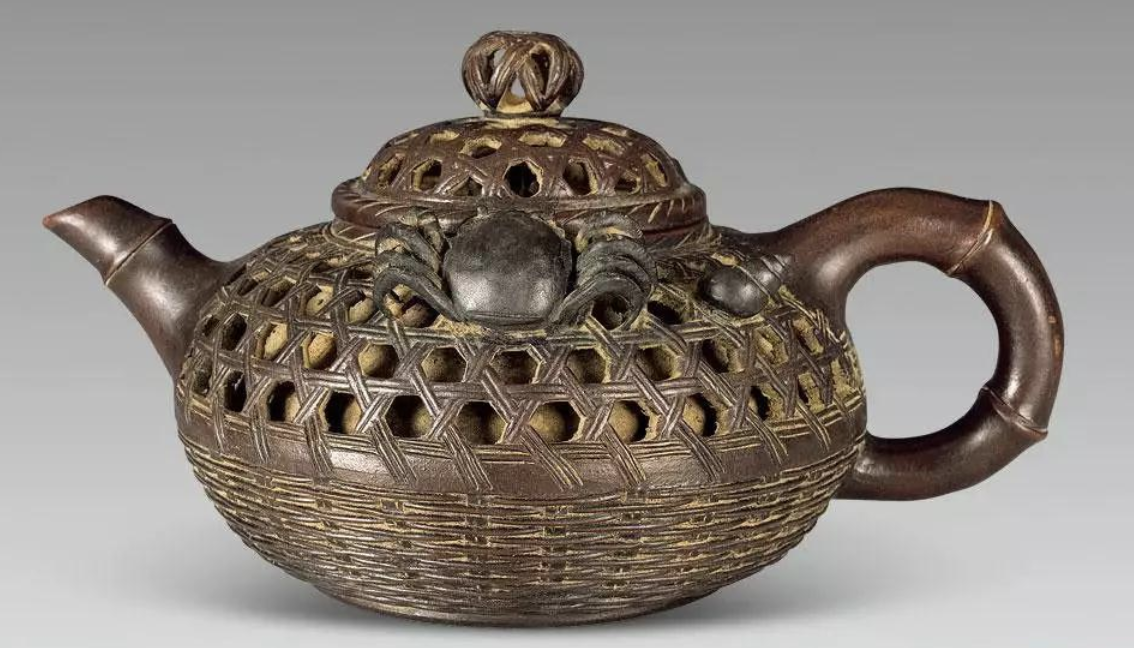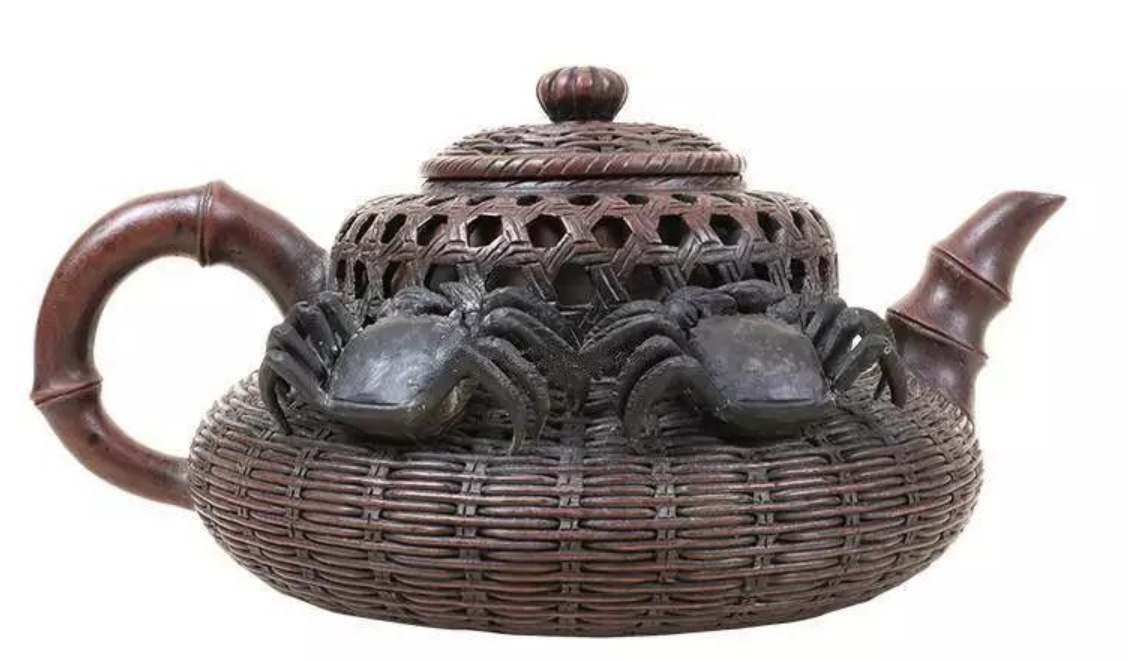 清末 鏤空竹編螃蟹紫砂壺